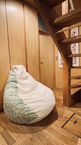 イタリア家具メーカーのザノッタ社サッコは今から50年以上前に発表されました。 袋(サッコ)にスチレンビーズを入れたシンプルなもので形状がユニークです、当時はとても前衛的なものでした。MOMAの収蔵品でもあります。 わが家に来たのは14年前に住居兼ア…